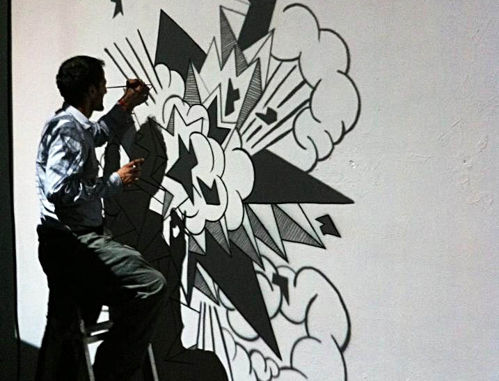 Τους τοίχους της γκαλερί κοσμούν έργα τέχνης σε μελάνι και χαρτί ενώ ταυτόχρονα ξεδιπλώνεται μια όμορφή ιστορία αγάπης ενός νέου ζευγαριού, με φόντο περιγραφικά τοπία.