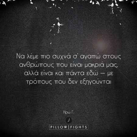 Ξέρεις όμως εκείνη την αίσθηση, που σφίγγεται το στομάχι σου κάθε φορά που βλέπεις τον άλλον 4 εβδομάδες, 4 μήνες, 4 χρόνια ή 4 αιώνες μετά, ε; Καθόλου μην αναρωτιέσαι λοιπόν τι στο διάολο συμβαίνει, η καρδιά σου είναι που έχει ξαπλώσει κάτω και χτυπάει χέρια και πόδια στο πάτωμα λέγοντάς σου «Λίγο ακόμα σου είπα!». Μην κάνεις πως δεν καταλαβαίνεις, να χαρείς, δε θα κερδίσεις κάτι, το πείσμα της είναι αγιάτρευτο όσο κι αν τάχα μου σε συνέτισε η λογική σου.