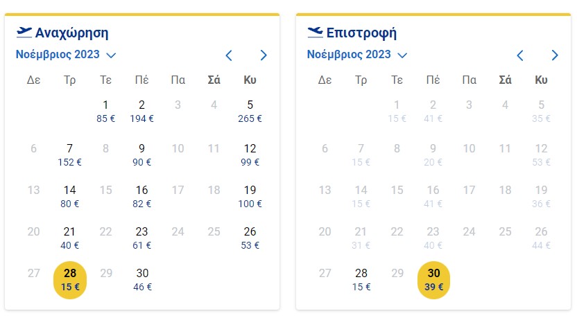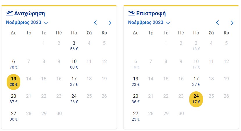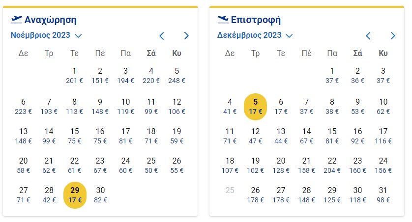 Από Αθήνα δεν έχει και πολλά η συγκεκριμένη προσφορά, όμως κάνει ένα δυνατό sale για Λονδίνο, όπου τα πράγματα είναι ακόμα πιο οικονομικά. Φεύγεις στις 29/11 και γυρνάς στις 5/12 έχοντας δώσει 34 ευρώ, άνευ βαλίτσας.