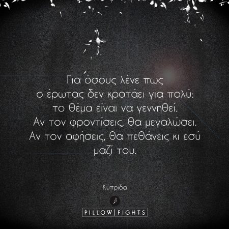 Επεισόδιο πρώτο, σκηνή ένα. Γειά! Είμαι η Κύπριδα. Φουλ οργανωτική, συνεπής μέχρι αηδίας και αλλεργική στα στερεότυπα. Λατρεύω τη μουσική (από Γωγώ Τσαμπά μέχρι Hi-5), τις σειρές του Παπακαλιάτη και το καλό φαγητό. Μόνο που δεν τρώω καρπούζι το καλοκαίρι, ντομάτα στη χωριάτικη και προς Θεού… όχι κανέλα στην μπουγάτσα! Τώρα που το σκέφτομαι, με λες και ξενέρωτη. Ποιά η σχέση μου με τις λέξεις; Μάλλον είναι οι μόνες που με αντέχουν! Μότο μου: Ονειρέψου γιατί χανόμαστε!