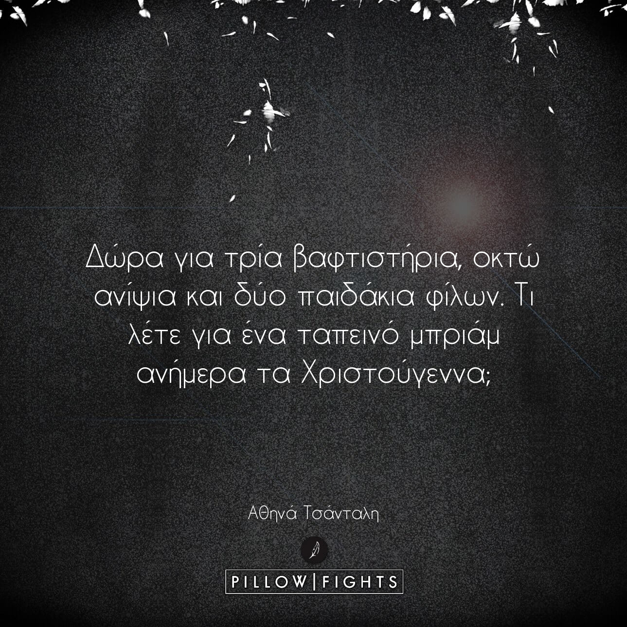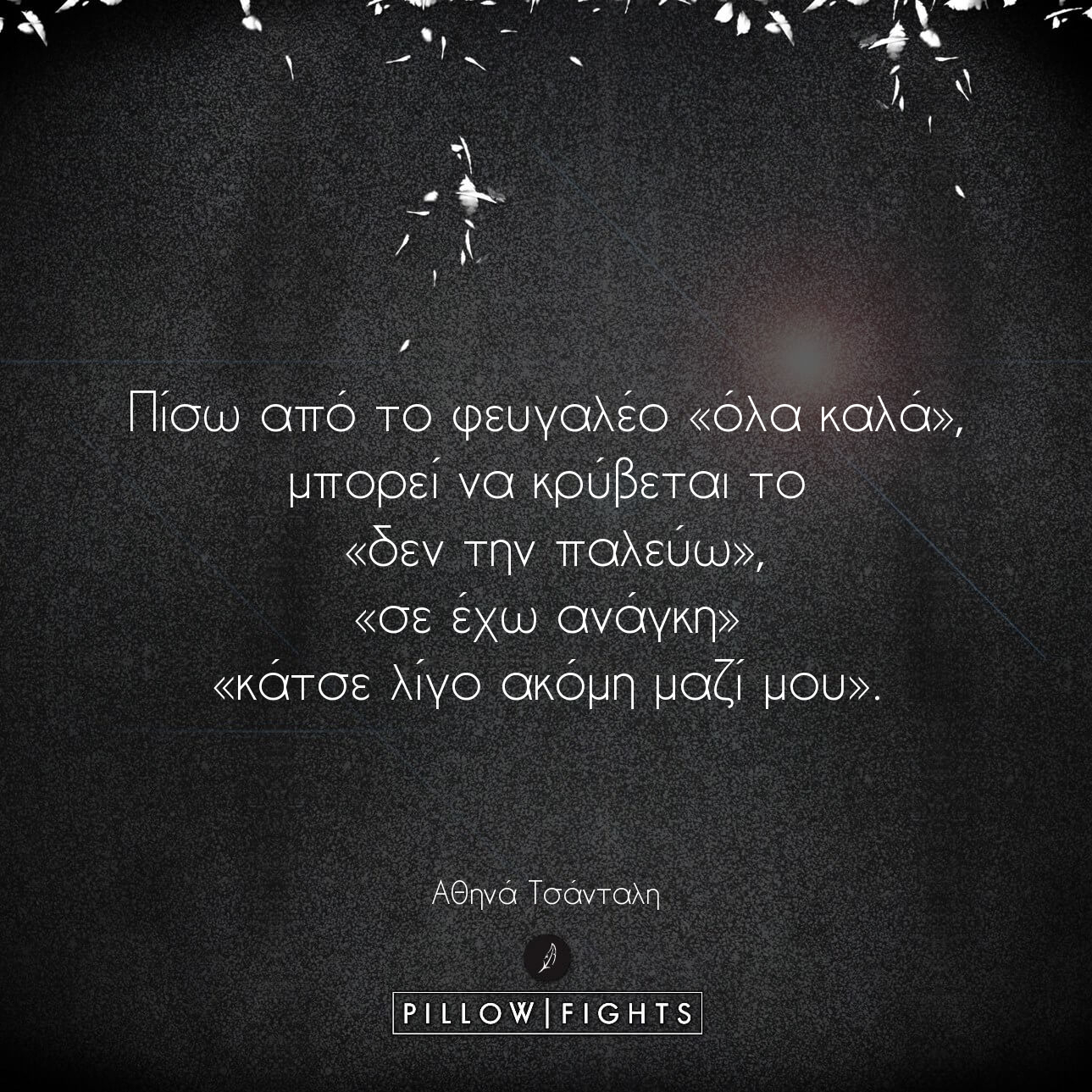 Ναι, είμαι της υπερανάλυσης, γι΄ αυτό και γράφω συνέχεια. Πάνω σε μια χαρτοπετσέτα, σ’ εκείνο το μικρό σημειωματάριο της κουζίνας για τα ψώνια, πάνω στις νότες του πιάνου μου, στον ανοιχτό υπολογιστή μου, μα κυρίως μέσα στον σκληρό δίσκο του μυαλού μου. Γράφω για να εκτονώσω τις έντονες σκέψεις μου και τα δυνατά συναισθήματα μου. Γράφω για ό,τι πιέστηκε από κάτι άσχημο που διάβασα, για ό,τι ζεστάθηκε με την καλημέρα του γείτονα, για την απουσία του αυτονόητου. Είναι ανακουφιστικό να δημιουργείς, νιώθεις ζωντανός. Οπότε λέω στον εαυτό μου «Αθηνά, πιάσε τις λέξεις και πέτα». Όλα τα άλλα, απλά θ’ ακολουθήσουν.