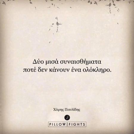 Home » Pillow Quotes » Δύο μισά συναισθήματα ποτέ δεν…