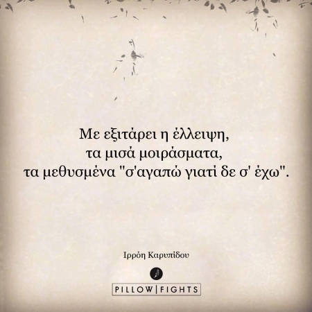 Home » Pillow Quotes » Με εξιτάρει η έλλειψη, τα μισά…