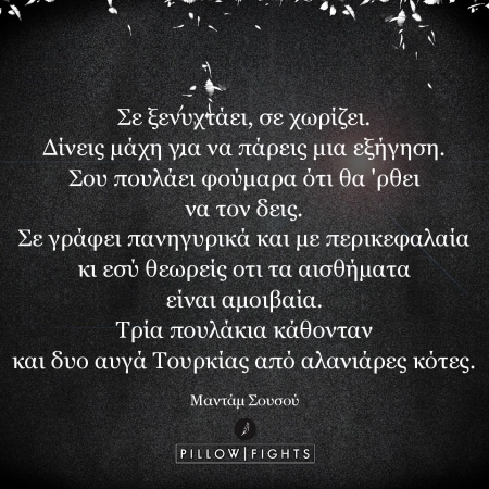 Home » Pillow Quotes » Σε ξενυχτάει, σε χωρίζει. Δίνεις…