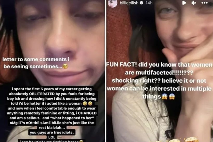 Όταν η Billie έγινε διάσημη, ήταν ακόμα παιδί. Το internet την τύλιξε με θαυμασμό – και μετά με μαχαίρια. «Δεν φοράω στενά ρούχα γιατί δεν θέλω να ακούω γνώμες για το σώμα μου», είχε πει. Κι όμως, το μίσος ήρθε ακόμα κι όταν φόρεσε ένα απλό αμάνικο: «Η Billie πάχυνε», «η Billie δεν είναι πια κουλ», έγραφαν. Σ’ ένα βίντεο που δημοσίευσε με τη φωνή της να σπάει, είπε: «Το σώμα μου είναι δικό μου. Δεν σας το χρωστάω».
