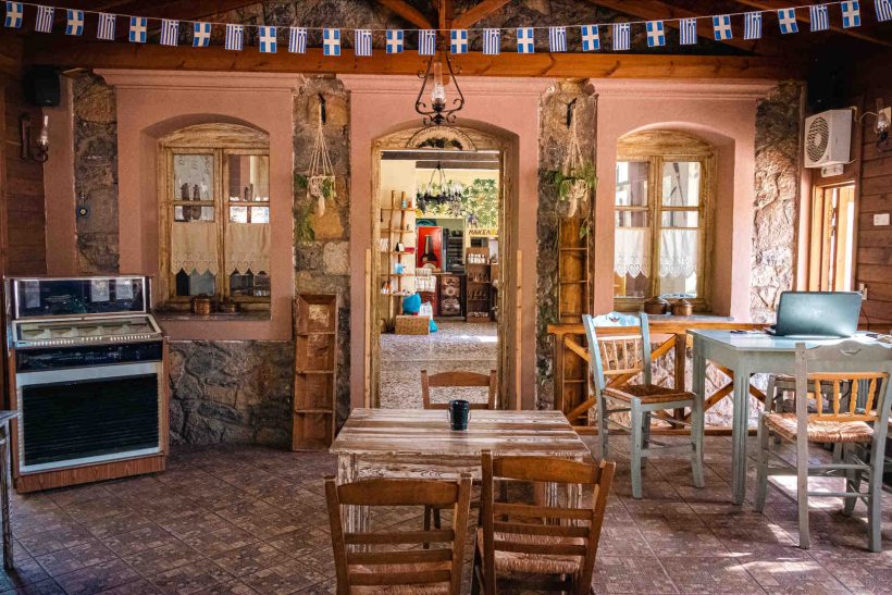 Αν πάλι είσαι του πιο ψητού ή της σουβλακοκατάστασης, λίγα μέτρα πιο κάτω, στη μικρή πλατεία μπορείς να καθίσεις στο Παλιό Σχολείο. Εκεί που κάποτε ήταν το σχολείο του χωριού, τώρα πλέον και λόγω έλλειψης μαθητών, έχει γίνει ένα στέκι καλοφαγάδων με κοψίδια, ψητά στο φούρνο, σουβλιστά αλλά και μαγειρευτά. Η σαλάτα με τα αλμυρίκια και τα σπιτικά ντολμαδάκια θα είναι μια ευχάριστη πινελιά στο γεύμα σου. Όταν όμως θέλεις να δοκιμάσεις κάτι διαφορετικό και λίγο πιο «πειραγμένο», εκεί στη μικρή πλατεία είναι ο «Καφενές του Γιώργη». Η Ευαγγελία είναι ένα πολύ δημιουργικό άτομο που επιμελείται τις ιδιαίτερες γεύσεις του μενού. Από τη σαλάτα με παντζάρι, μήλο, πορτοκάλι και αρωματική μαγιονέζα, τις λεμονάτες σαρδέλες και τον χειροποίητο τραχανά μέχρι την τυρόπιτα με κανταΐφι και περγαμόντο και τις veggie επιλογές, όλα είναι προσεγμένα στη λεπτομέρεια.
