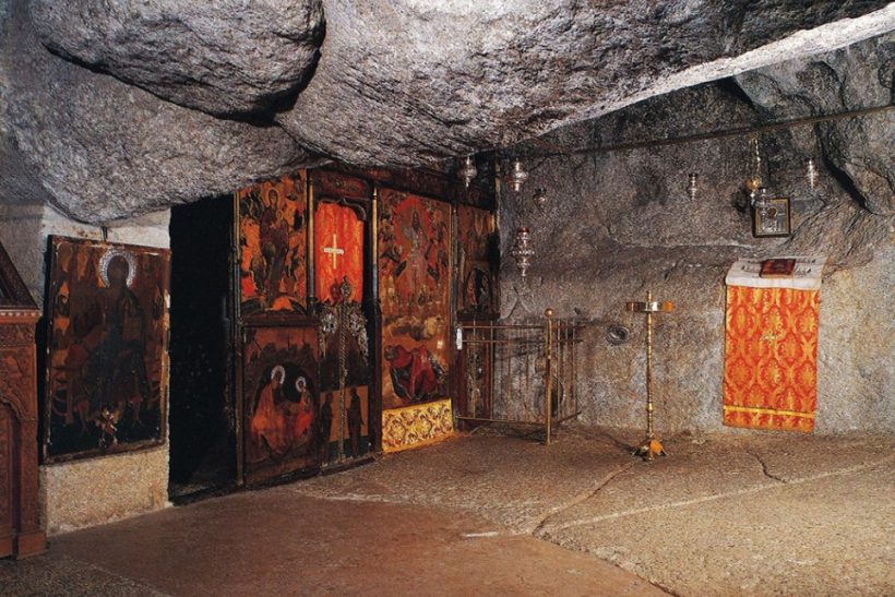 Ο Ιερομόναχος Ισίδωρος αναφέρει για την ιστορία του: «Μια ημέρα, Κυριακή την ώρα της προσευχής του, το γράφει και στο βιβλίο του, άκουσε τη φωνή του Θεού που του είπε “ό,τι ακούς να το γράψεις σε βιβλίο”. Ο βράχος, τότε, σκίστηκε σε 3 ρωγμές κι ο Ιωάννης έγραψε την Αποκάλυψη, το τελευταίο βιβλίο της Καινής Διαθήκης. Μετά παρουσιάστηκε μπροστά του κι ο Χριστός. Έχουμε δηλαδή τη σωματική παρουσία στο Σπήλαιο. Πάτησαν τα πόδια του Χριστού. Είναι θεοβάδιστο. Είναι κατάληξις των Αγίων Τόπων γι’ αυτό και λέγεται “Ιερουσαλήμ του Αιγαίου”.»