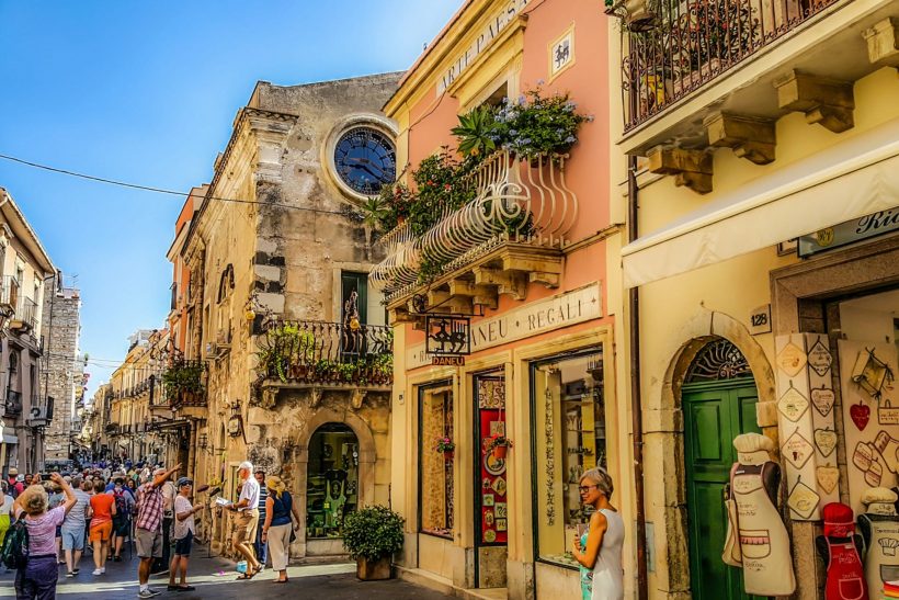Πέρα όμως από τους χώρους αρχαιολογικού ενδιαφέροντος και τις παραλίες, αξίζει να επισκεφτεί κανείς και το κέντρο της πόλης που προσφέρεται για ατελείωτες βόλτες, φωτογράφηση αλλά και ψώνια. Η οδός Corso Umberto προσφέρει άπειρες επιλογές high end μαγαζιών με όλους τους γνωστούς οίκους ενώ κανείς μπορεί να προμηθευτεί σουβενίρ που θα του θυμίζουν για πάντα το ταξίδι του εκεί. Η περιοχή φημίζεται για την παραδοσιακή κεραμική της οπότε ένα σουβενίρ σε σχήμα κουκουναριού σε πολλά και διαφορετικά χρώματα για καλή τύχη ή ένα άρωμα Zagara di Taormina, κλασικό άρωμα της πόλης, επιβάλλεται να βρεθούν στη λίστα με τα ψώνια σας.