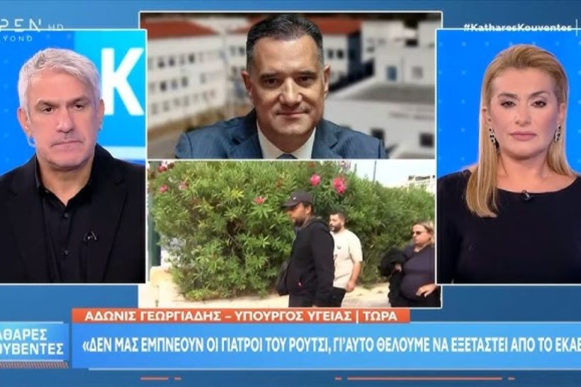 Ο Άδωνις Γεωργιάδης ψέγει δημόσια την ιατρική ομάδα που παρακολουθεί τον πατέρα, βάζοντας στο στόχαστρο την επικεφαλής ιατρό Όλγα Κοσμοπούλου, λέγοντας ότι δεν κάνει ιατρική, αλλά πολιτική. Κατά τα λεγόμενά του: «Είναι ένα πρόσωπο που είναι μονίμως η γιατρός όλων των απεργών πείνας της αριστεράς». Και σαν να μην έφτανε αυτό κατηγόρησε και τον ίδιο τον Πάνο Ρούτσι, λέγοντας ότι «Αν κάποιος αισθάνεται αδιαθεσία, δεν πάει σε ξενοδοχείο. Δεν σάς κρύβω ότι μού έκανε μεγάλη εντύπωση ότι ένας άνθρωπος μετά από 19-20 ημέρες απεργίας πείνας πάει στα επείγοντα γιατί αισθάνεται μία αδιαθεσία». Μάλιστα, προκάλεσε ανοιχτά τόσο τον απεργό, όσο και την ιατρική ομάδα που τον παρακολουθεί να βγάλουν στον αέρα τις εξετάσεις.