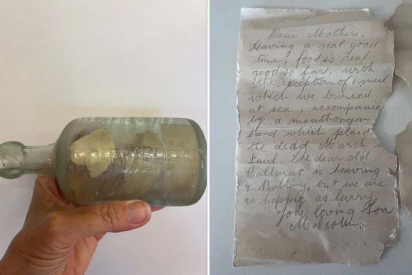 Στην απομακρυσμένη παραλία Wharton Beach της Δυτικής Αυστραλίας ένα γυάλινο μπουκάλι, λίγο σκουριασμένο από τον ήλιο και το αλάτι, φάνηκε ξαφνικά να στέλνει ένα δικό του μήνυμα. Το ανακάλυψε στις 9 Οκτωβρίου η Deb Brown, ενώ καθάριζε με την οικογένειά της την ακτή από απορρίμματα. Μέσα στο μπουκάλι υπήρχαν δύο γράμματα που είχαν ριχτεί στη θάλασσα σχεδόν έναν αιώνα πριν. Δηλαδή, τον Αύγουστο του 1916, από δύο Αυστραλούς στρατιώτες της HMAT A70 Ballarat και συγκεκριμένα, τον Malcolm Alexander Neville και τον William Kirk Harley.