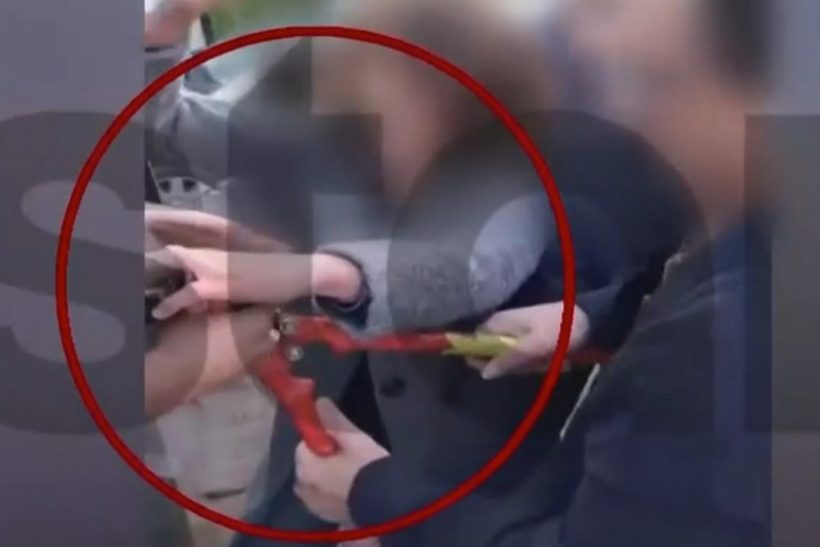 Από το βίντεο ακούγεται ο μαθητής να φωνάζει έντονα «Το χέρι μου, το χέρι μου!». Η διευθύντρια ακούγεται να του λέει: «Πάρε το χέρι σου από εκεί», με τον μαθητή να απαντά πανικόβλητος «Δεν μπορώ, πονάω… βγάλε τον κόφτη». Σε άλλο σημείο ακούγεται ο μαθητής να φωνάζει. «Σταματήστε, πονάω, αφήστε το χέρι μου», ενώ γύρω ακούγονται φωνές συμμαθητών που ζητούν να σταματήσει η προσπάθεια. Ο κόφτης παραμένει για λίγα δευτερόλεπτα κλεισμένος στα δάχτυλά του, μέχρι να απελευθερωθεί το χέρι του.