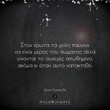 Τα σωθικά σου φλέγονταν, κάθε φορά που πάλευες για αυτή την αγάπη, αλλά εγώ δεν έπαιρνα από λόγια. Ο εγωισμός μου κι η αλαζονεία μου είχαν χτίσει έναν τοίχο, που όσες φορές κι αν κατάφερνες να τον γκρεμίσεις έστω λίγο, αυτός πάντα τα κατάφερνε να σηκώνεται και κάθε φορά γινόταν ακόμη πιο ψηλός.